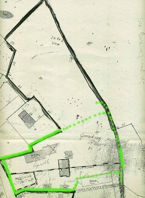 Linie das hier betreffende Grundstück mit wegen Wuchers noch nicht erworbener