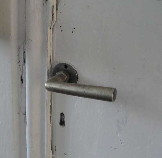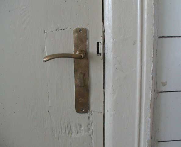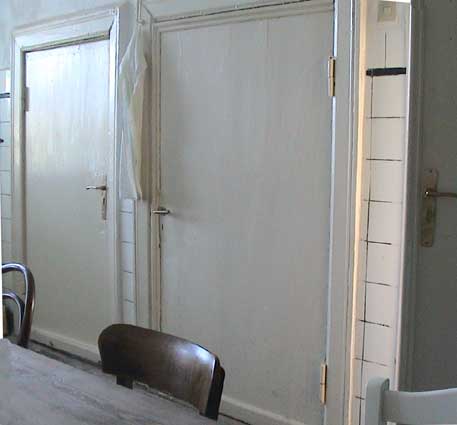 Tür zu und warten auf Installation der Einbauten. Wanne, Becken, Klo. Neben