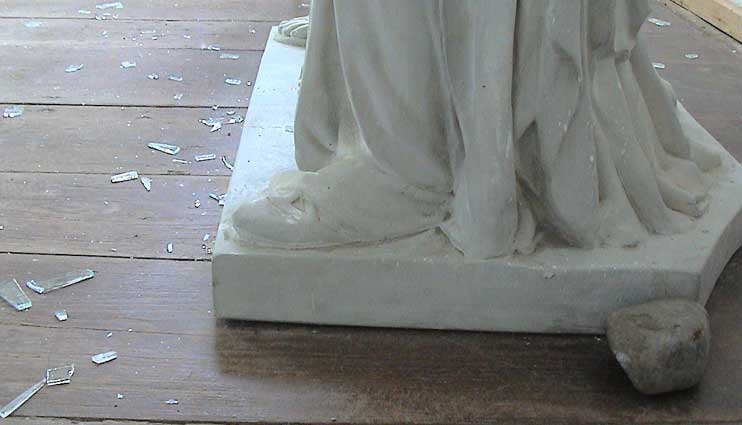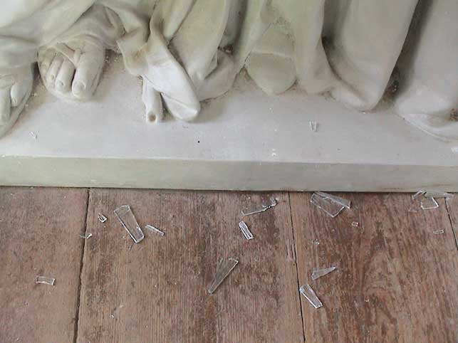 Er kam von einem Besäufnis bei seinem Kumpel N.K., brach durch die Ruine der von ihm stehen gelassenen Garage, Fenster eingedrückt, so die Notwand in der Tür(Steine eingerissen), ins Grundstück ein. Nach dem 2.Anschlag gegen mein Fenster selbst, wo ich unten ihn stehen sah, schwarz mit dem N. auf seinem Hemd vom ersten Weihnachten zusammen und weissen Schuhen -hat er nicht bedacht, das es einer ist mit nightshot-Einrichtung in der Kamera, den er da attackiert-, floh er Richtung Neubau, aber nicht nachhause(Alibi), sondern zu den K. A. wo die Polizei, wenn gerufen, ihn nicht gleich fände. Rennend unter Rufen, wer mein Kumpel sein will, brennt das Gutshaus ab!" und " den Schuppen fackel ich ab"! Er, der Feuerwehrmann. Der die Treppe - löschen half...