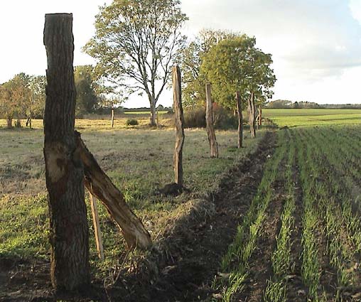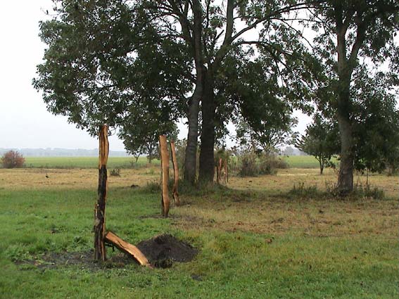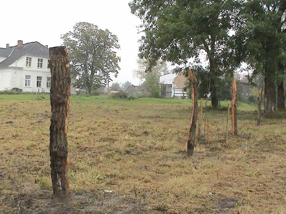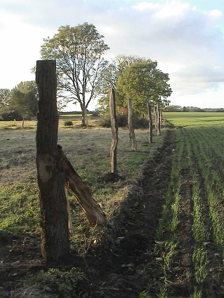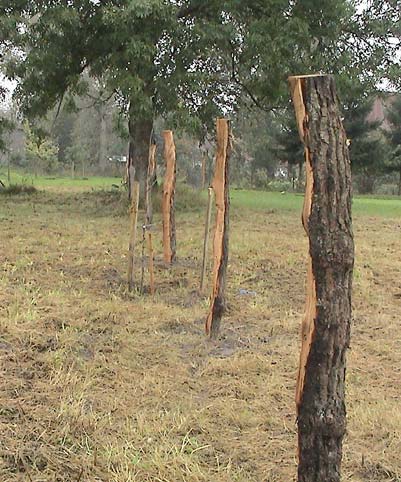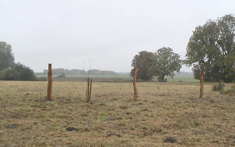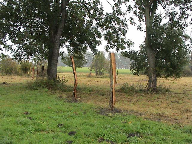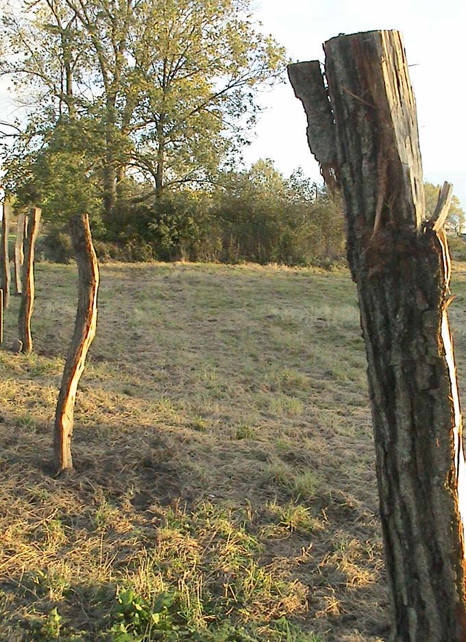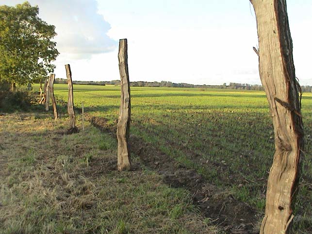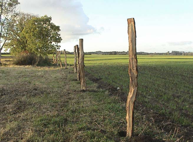 Der Förster, der die Eichenstämme im Wald herausgab, warnte vor den Mühen der Spaltung mit den eisernen Keilen. Es war ganz einfach.Einmal begonnen wie eine Sucht. Dumpfe Schläge, berstendes Holz, Pfahl auf Pfahl entstand aus den wartenden Stämmen, alle gleich aus gleichem Holz und zu gleichem Zweck und jeder anders in Form und Umfang und Stellung, in die Erde gerammt.