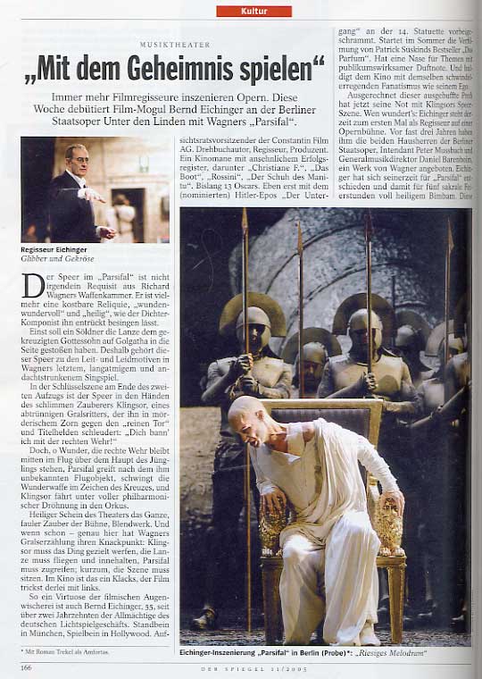 Der Filmproduzent Bernd Eichinger inszeniert Richard Wagners Bühnenweihfestspiel "Parsifal" an