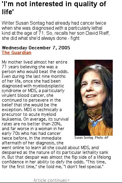 Writer Susan Sontag had already had cancer twice when she was diagnosed with