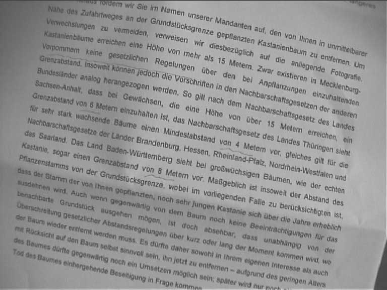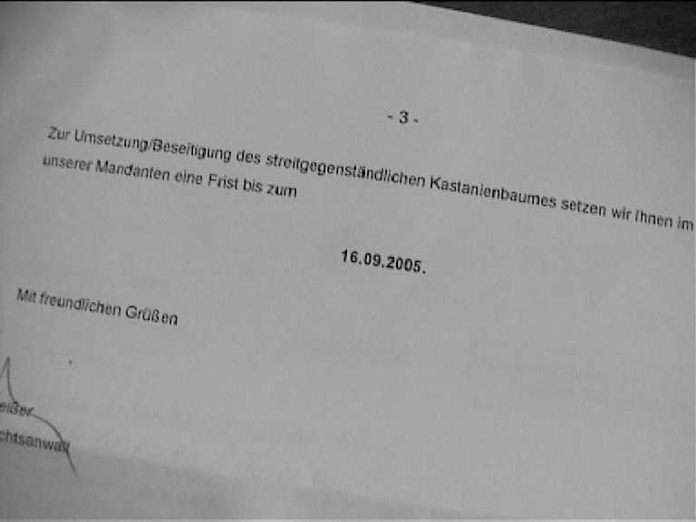 verdecken soll. Die unsinnige Forderung nach Entfernung der genannten Kastanie