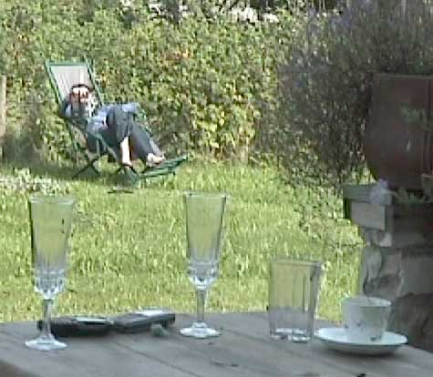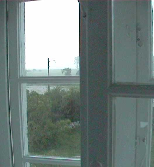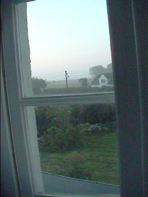 Nebel hinten in die Wiesen und Felder und vorne wieder Ruhe der Mauern und befestigenden Büsche und Sträucher. Das Fenster aus Paris zurück, immer noch wieder da.