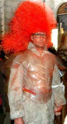 Schließlich tritt Schlingensief mit wallend roter Perücke, nackten