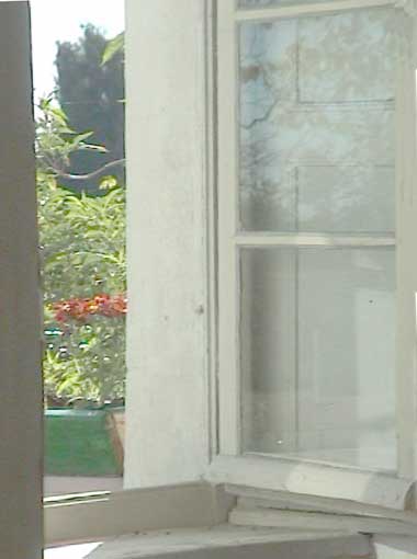 Fenstern ist keine Einfahrt zu sehen durch ehemalige Garagenruine verdeckt