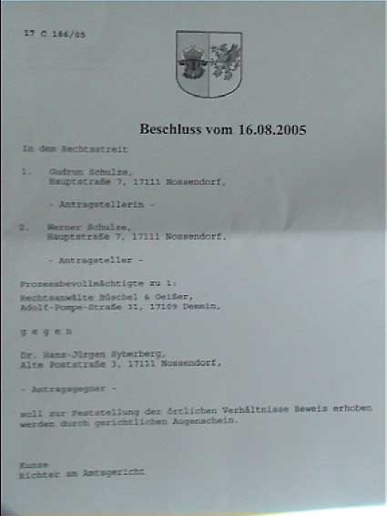 Ihre Ladung zum Ortstermin auf dem Anwesen der Kläger geht von der irrigen