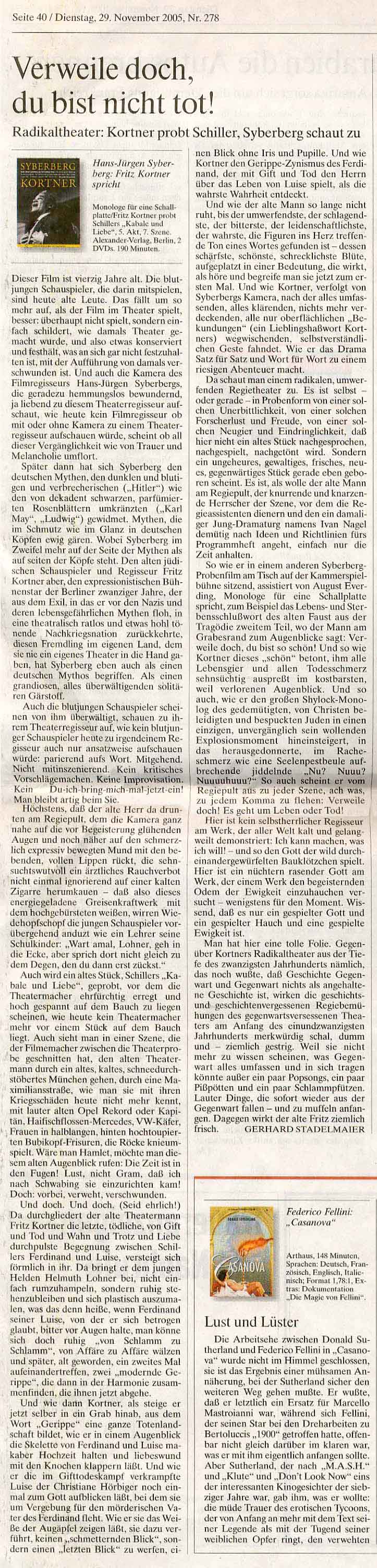 jüngster Sendelpan 3Sat aus Anlass Schiller 2005 Kabale abgesagt)