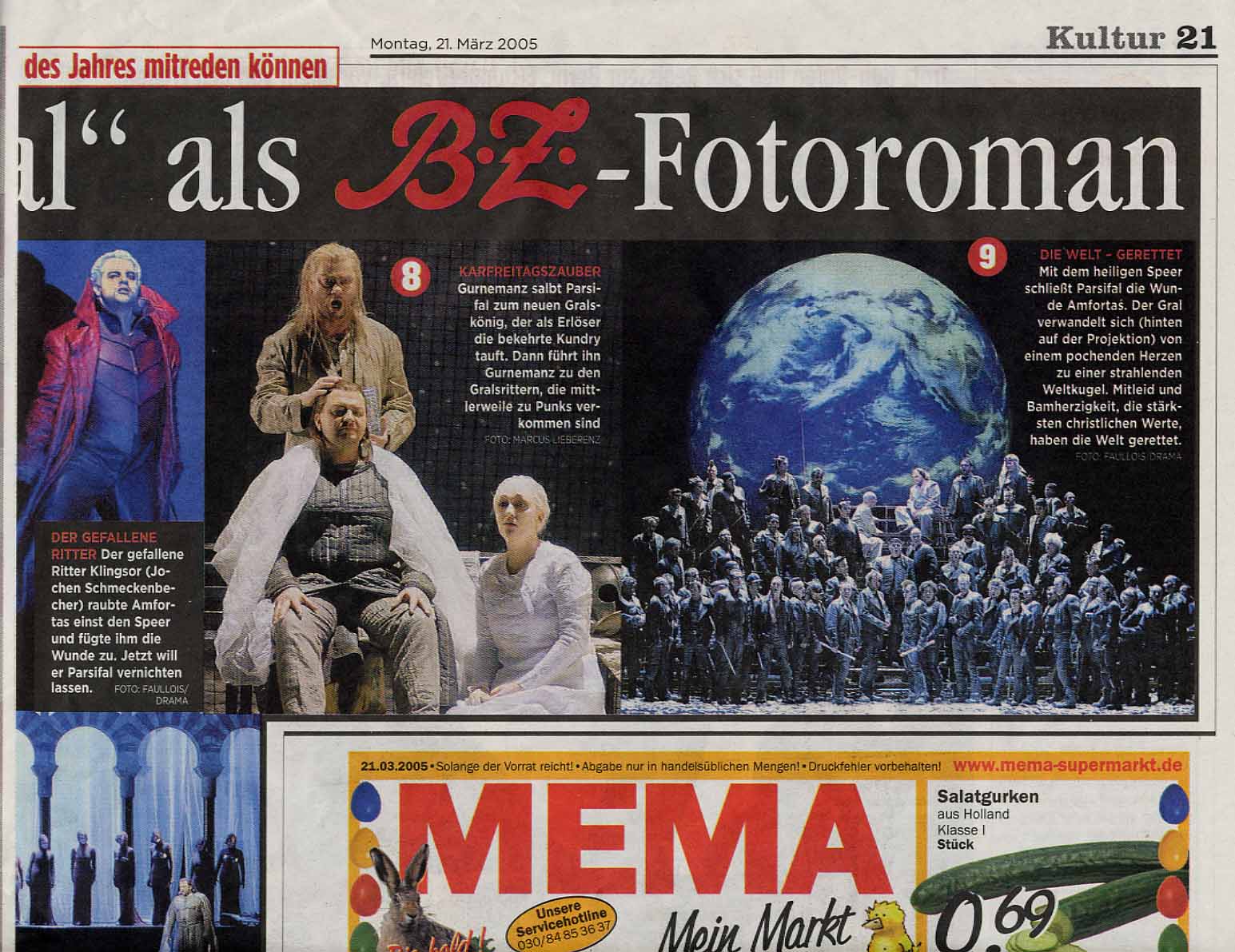 Der Berliner "Parsifal" ist mit Sängern wie René Pape (Gurnemanz), Hanno Müller-Brachmann (Amfortas), Burkhard Fritz (Parsifal), Michaela Schuster (Kundry) und Jochen Schmeckenbecher (Klingsor) hochkarätig besetzt. Die Premiere war Auftakt der Festtage der Staatsoper, zu denen bis zum 28. März auch mehrere Konzerte der Staatskapelle Berlin und des Chicago Symphony Orchestra zählen. (md/dpa)