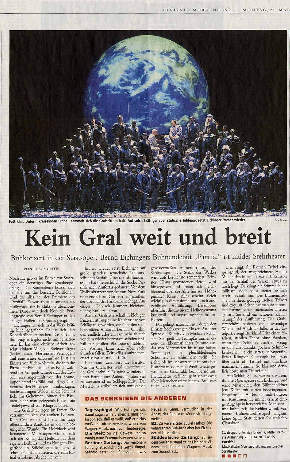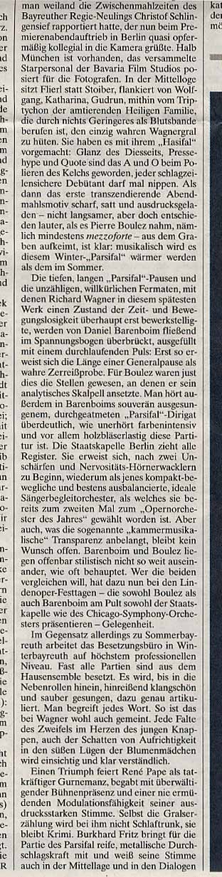 weitere Reaktionen zum Eichinger Parsifal