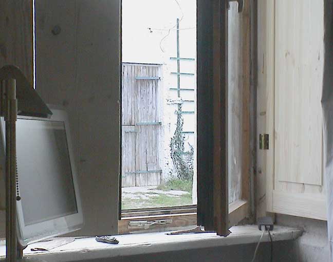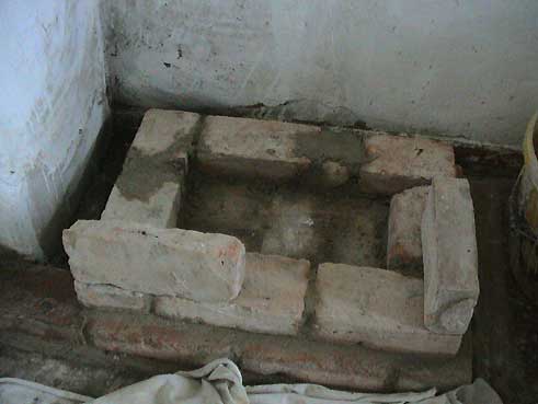 der neue Ofen aus Backsteinen im Prinzessinenzimmer.