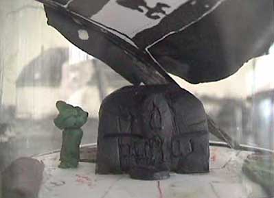 Am Anfang des Weges zurück baute ich kleine schwarze Häuschen aus Plastelin. Was sonst. Alles zu und schwarz das Pech von oben, drüber das Glas auch, für ewig.