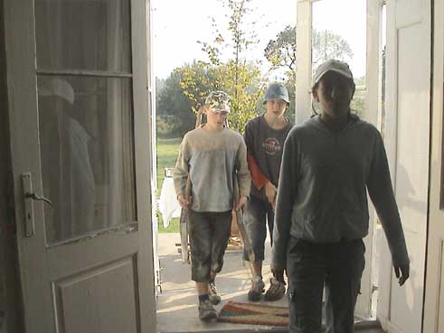 Säubern die Abruchsteine vom alten Putz, graben Löcher für Pfähle, die noch nicht da, pflücken ribbeln, kochen Hollunder, hüten das Haus, wenn selbst zum fotografieren nach Toitz, backen den zweiten Kuchen, dann mit U, satt D.