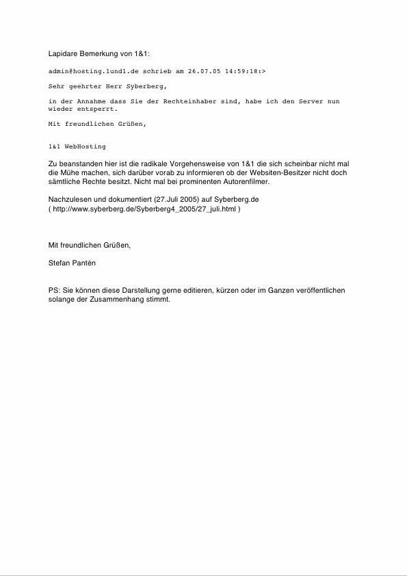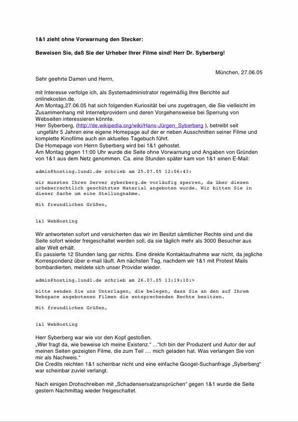 am 26. Juli 05 wurde meine Hompage www.Syberberg.de ohne Ankündigung