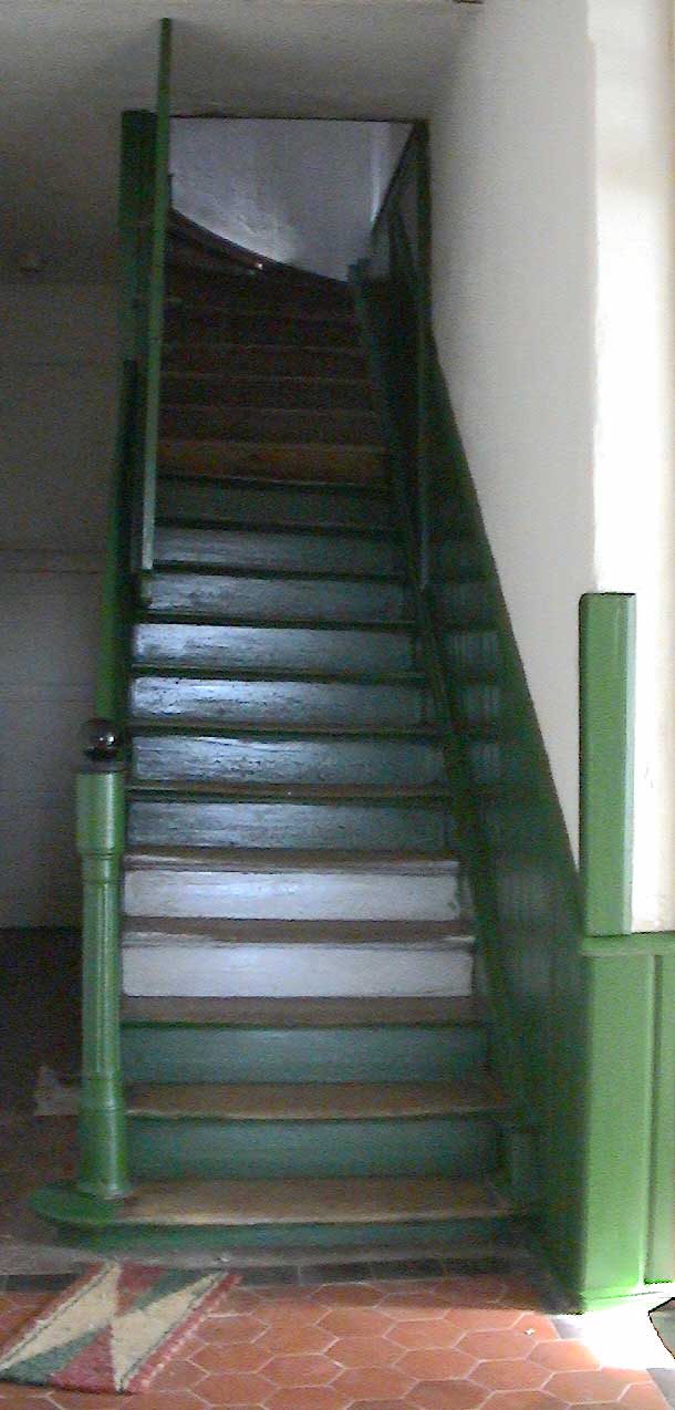 Treppe ist nun also grün statt vorher im alten Rot der Fussböden. In langem