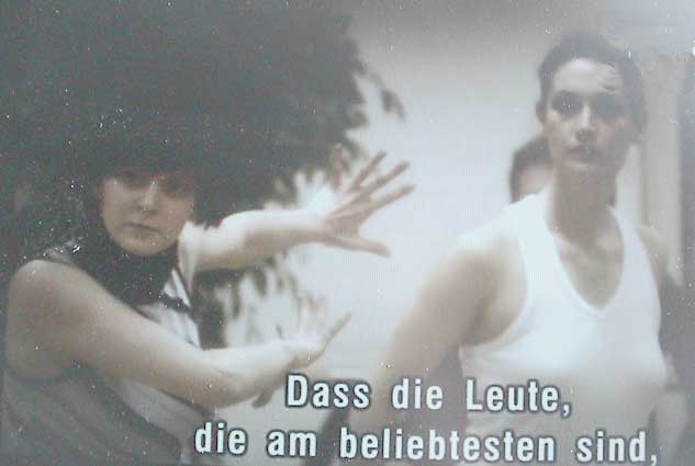 und weg sind plötzlich die Profis der professionellen Theater. Aus der Tiefe der Leere unter Null kommt mehr als alle Kilimanscharos und Chimborassos der Tänze zusammen, wenn die Disziplin noch einmal gewagt wird, sich selbst zu traun. In den Kinos und auf der Platte zu sehen kümmerlich abgenommen.