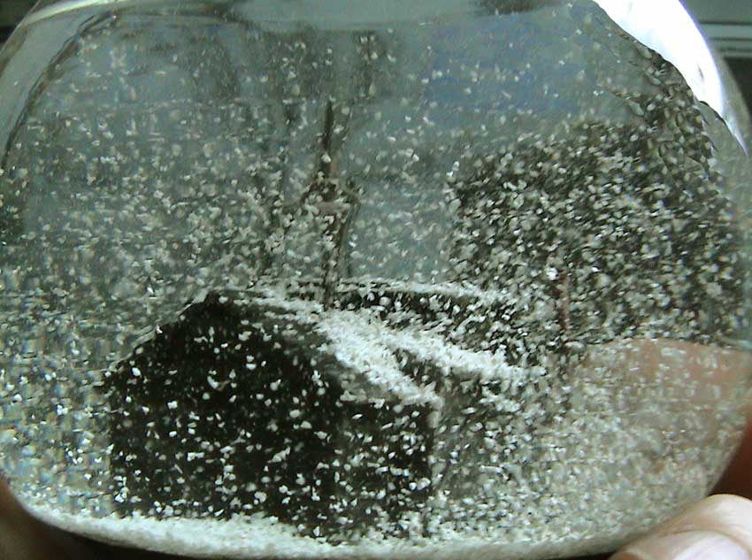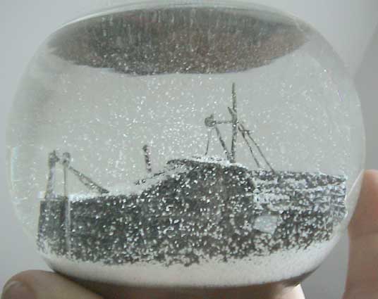 kam es zu dieser Kugel mit Schnee und dem schwarzen Gehäuse darin, das