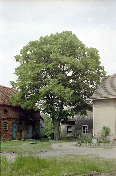Linde stand noch und hinten noch die Bäume des Gartens, die mit den Ställen