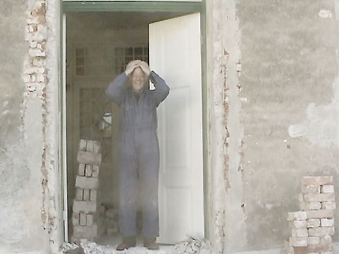 die Garage, eine von 3, nun 2005 auch mit zuen Gucklöchern ganz rein.