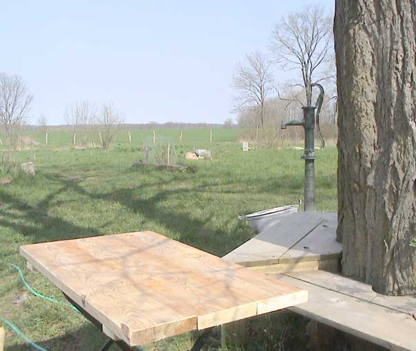 Linde vor der Küche nun über das Land schauend, aber alles wieder
