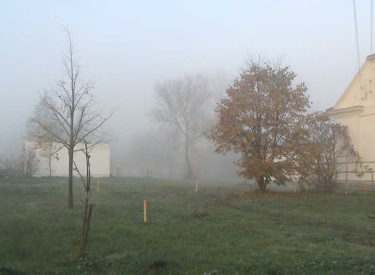 umhergegangen in den neuen Anlagen mit frisch gepflanzten Schehen vor 8 Uhr