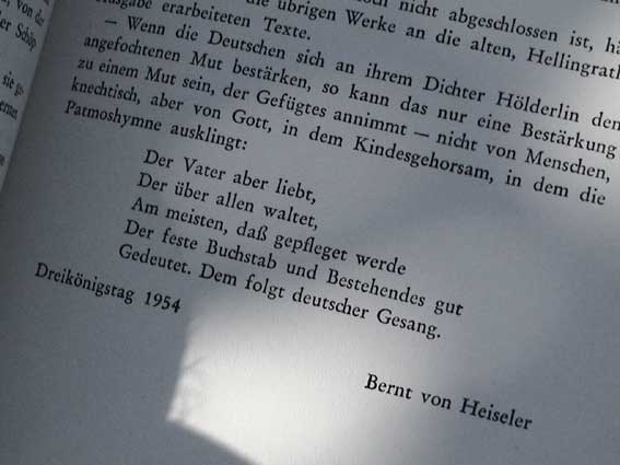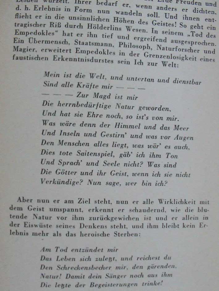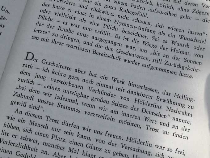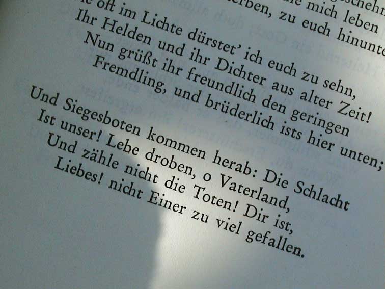 Er soll Hölderlin lesen, sagte die damalige Leherin in R. die dafür verantwortlich ist, dass er überhaupt je ihn las.