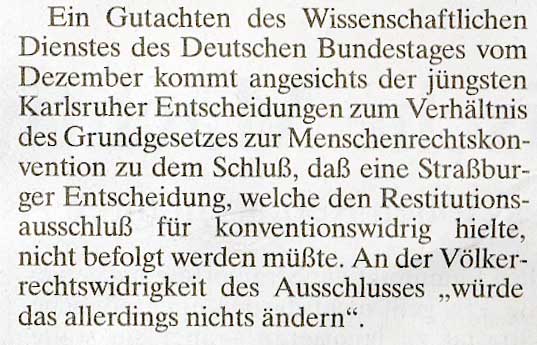 Der Tag an dem in Strassburg das neu etablierte Gericht für Menschenrechte endgültig entscheidet, ob das Unrecht an dem Land im Osten seit 45, und in der Folge nach der Wiedervereinigung 1990 von allen höchsten Institutionen deutschen Intitionen des westlichen Deutschland in Politik und Gerichten bestätigt, aufgehoben wird.(10.00h)