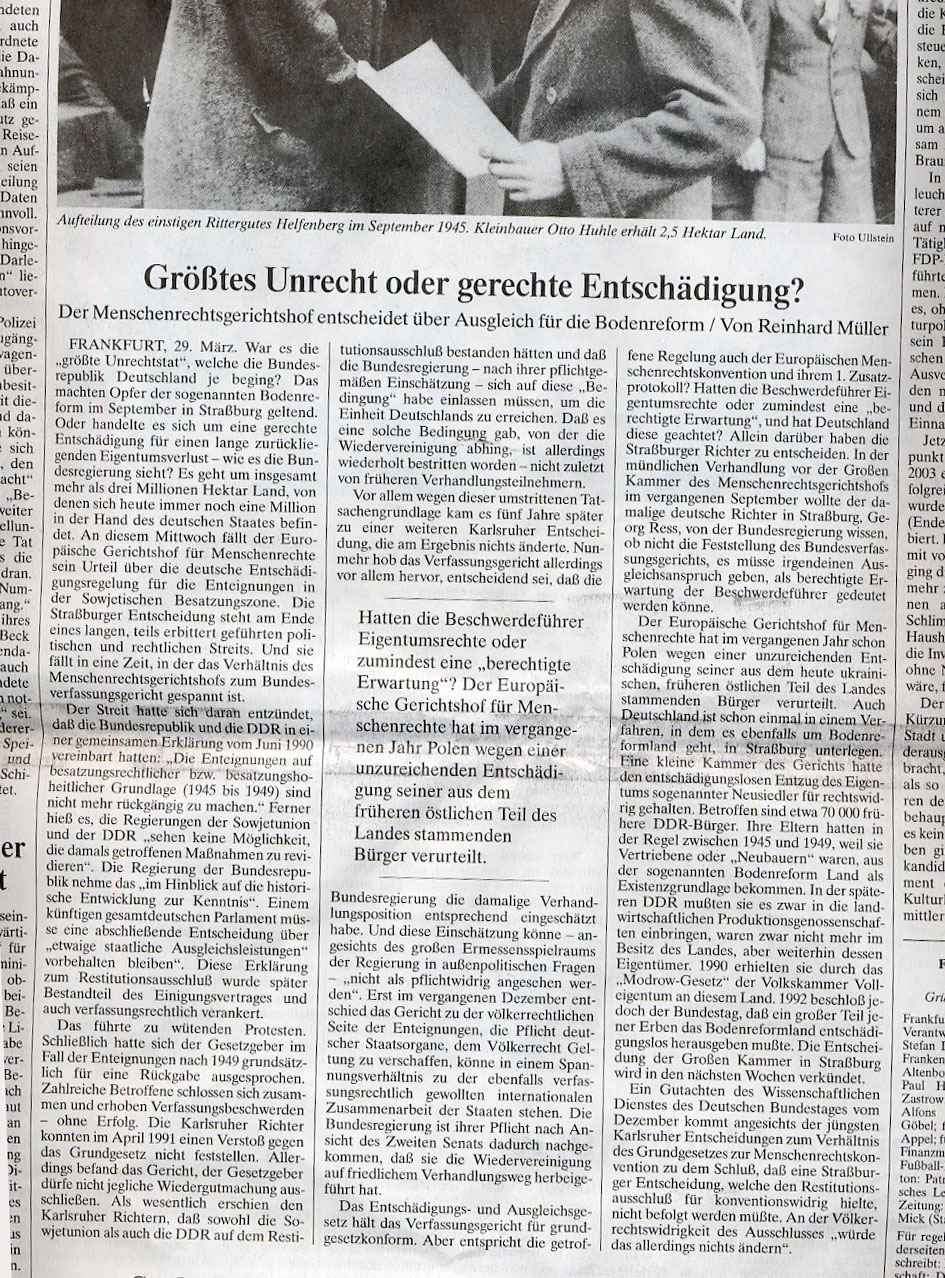 von Opfern der Bodenreform in Ostdeutschland in Milliardenhöhe abgewiesen.