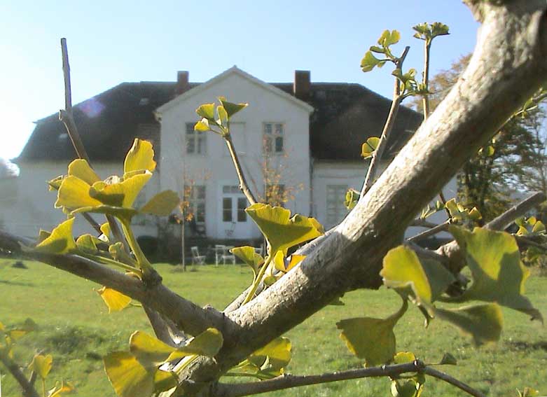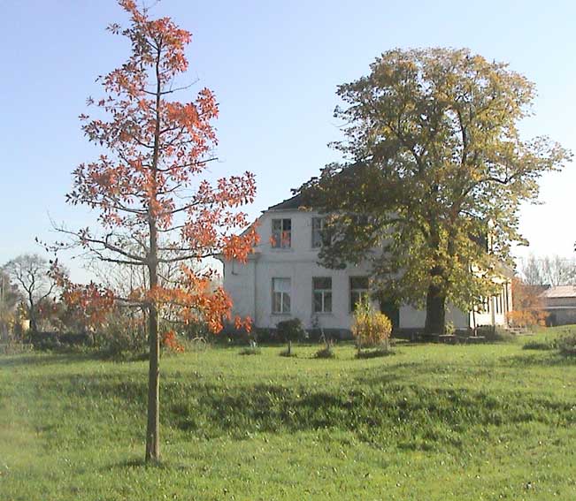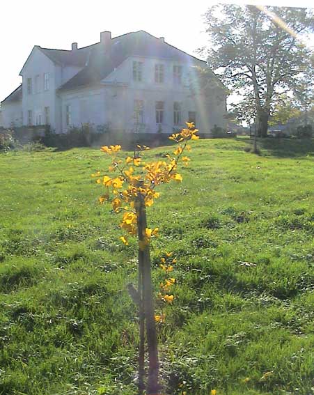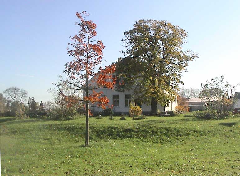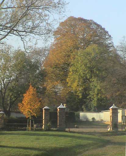 am Tor des ehemaligen Hofs stehen die neuen und alten Linden