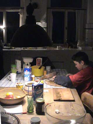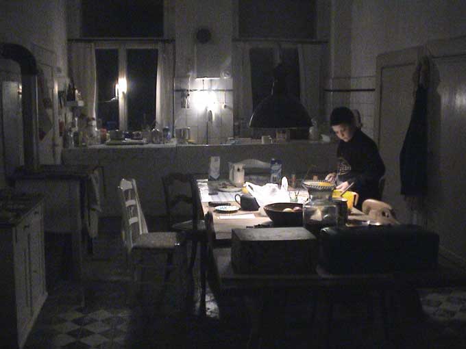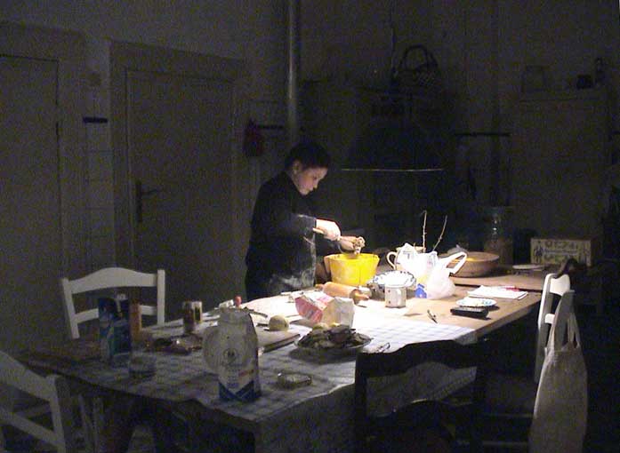 bäckt in der wiedererstandenen Küche