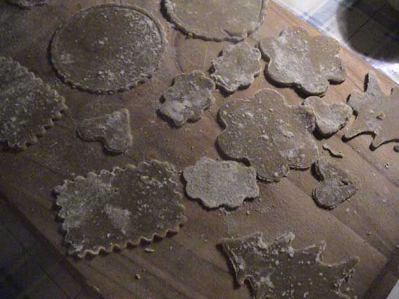 Dünn ausrollen auf Mehl - ausstechen - bei 160 Grad ca. 10 Min. backen