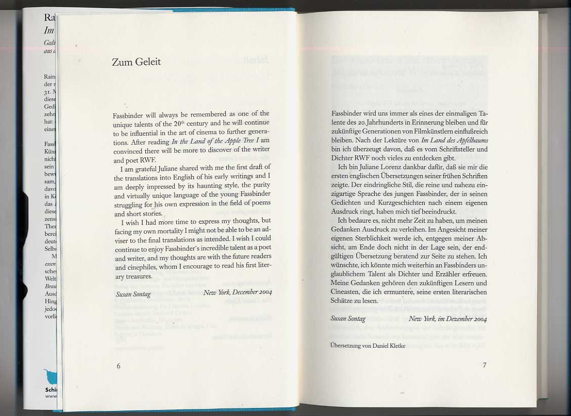 jetzt herausgekommene Buch mit ersten Texten RWFs mit einem Vorwort von Susan