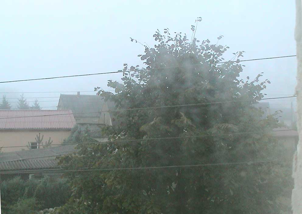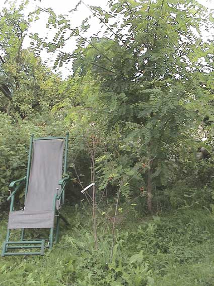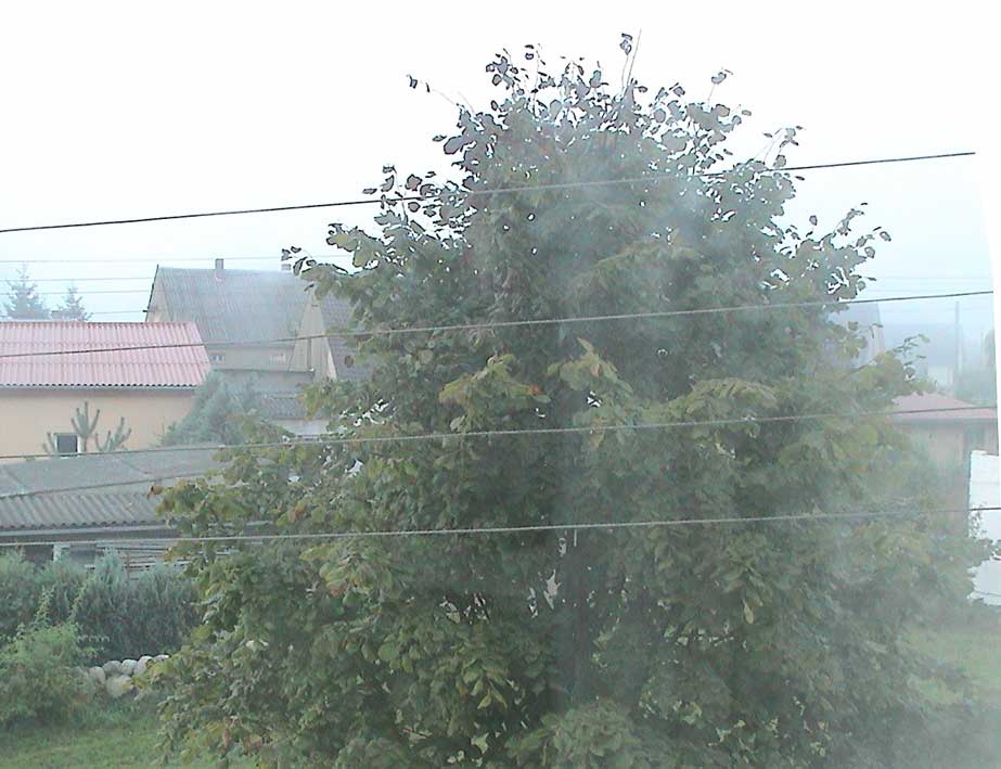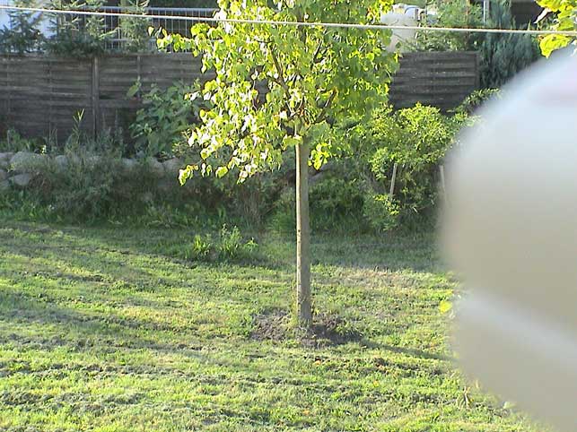 mit einen von Matten verhinderten Blick und mit einem Baum im Bild, der langsam