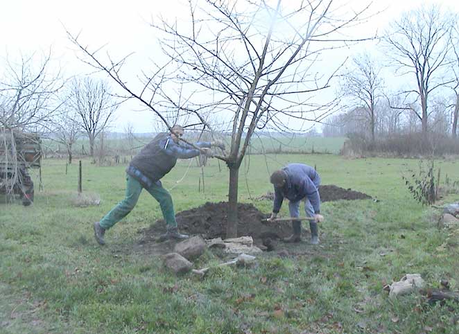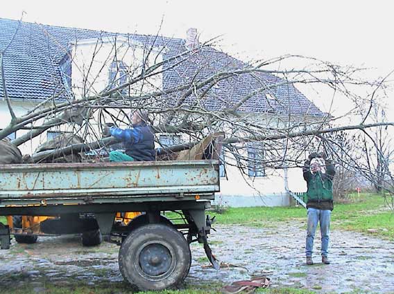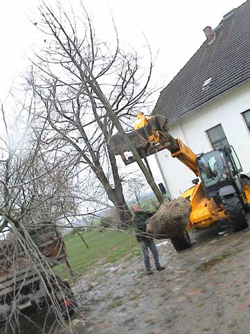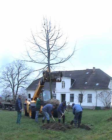 zuerst die Linde auf den Hof, wo der Kuhstall war.Geht nicht, Loch zu klein.
