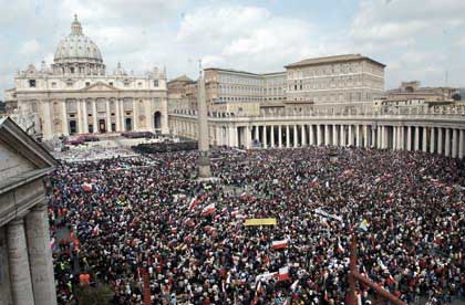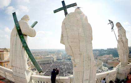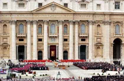 Als ob jetzt erst das Konzept Michelangelos aufging. Kirche und Kolonaden-Platz