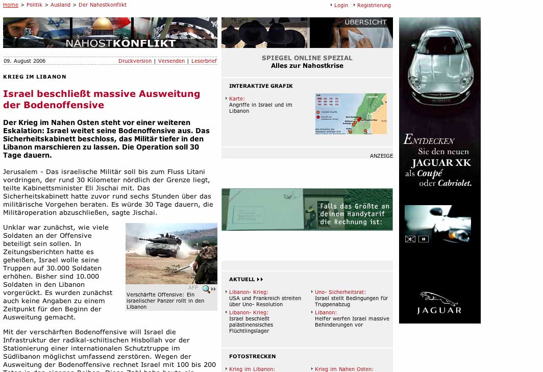 von der Front - meist, wenn israelische Soldaten getötet worden sind. Auch