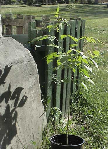 Linden, Kastanien und Eschen, wie auf dem Friedhof. Eine keline von der Frau