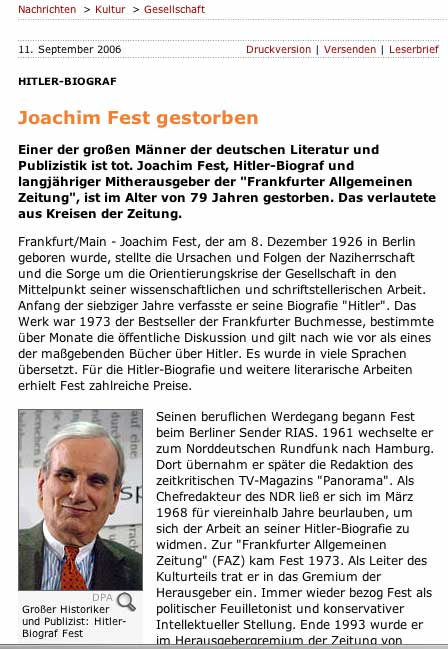 Großer Historiker und Publizist: Hitler-Biograf Fest