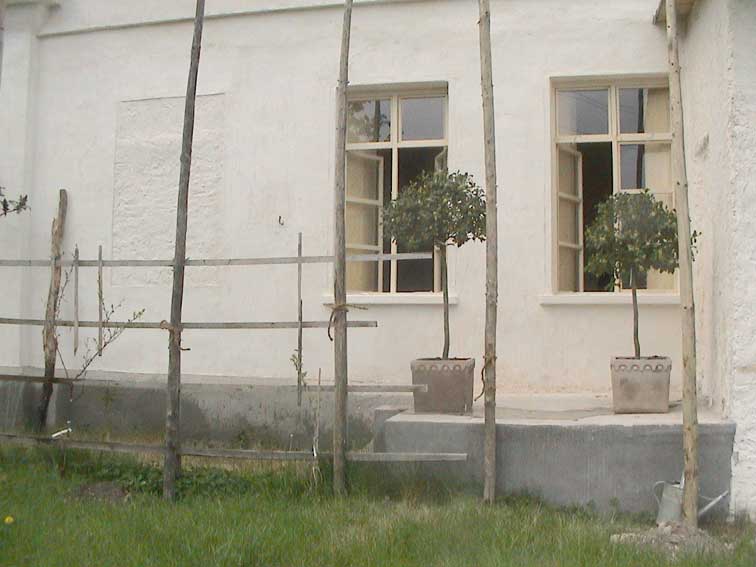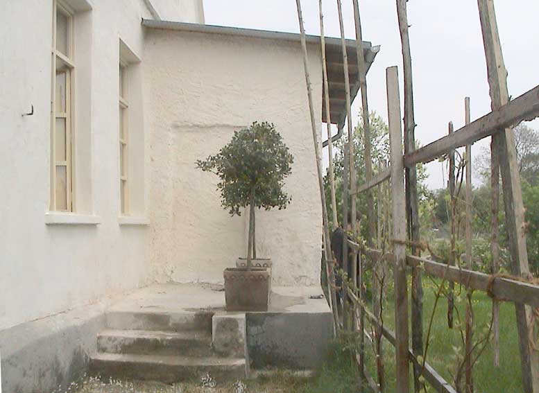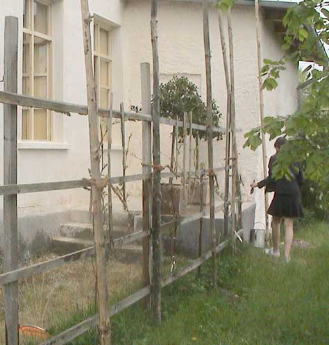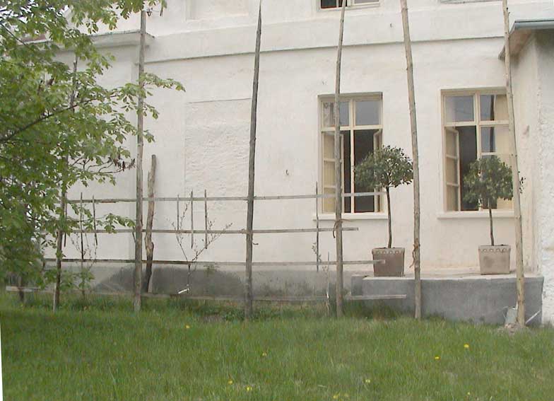 alte Spalier für den Wein hier an der sonnigen Südseite soll durch eine vorgebaute