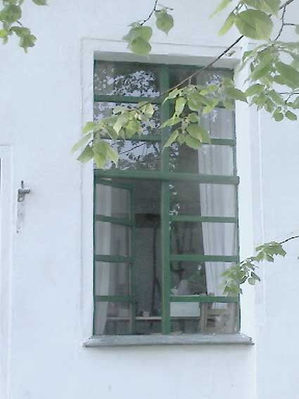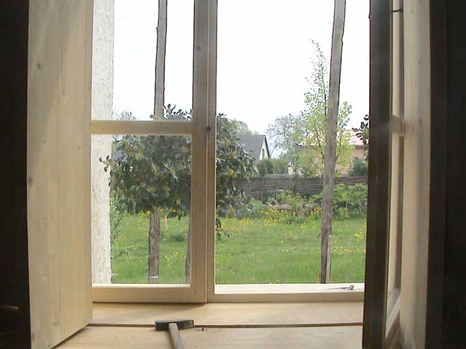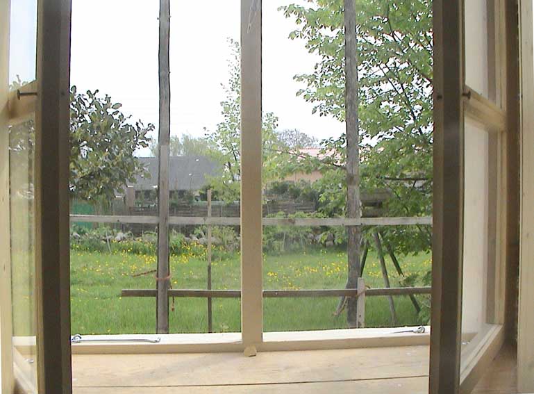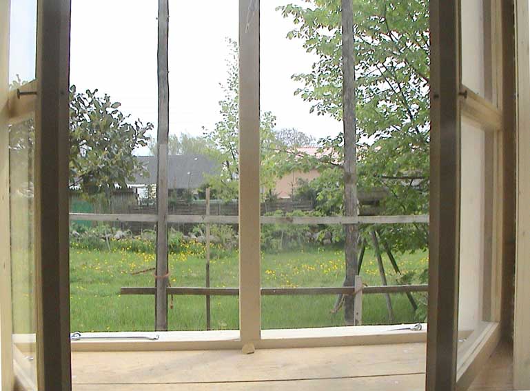 selbstgebaute Fenster(A) der Werkstatt in altem Rahmen der Kastenfenster, die