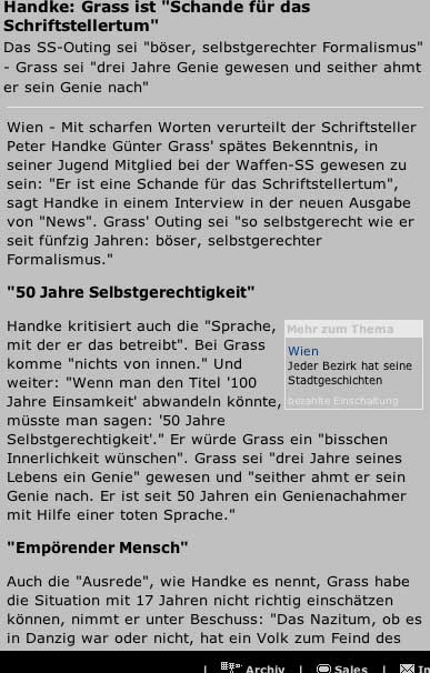Handke in NEWS: "Grass ist eine Schande für das Schriftstellertum"