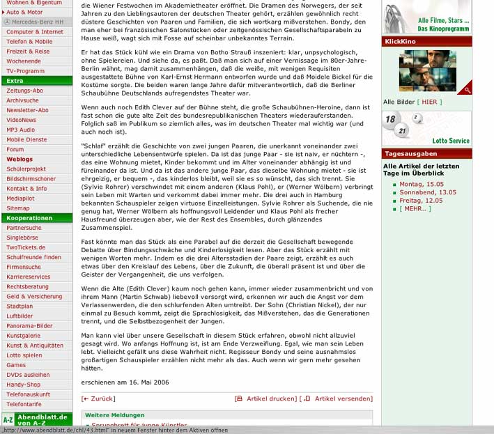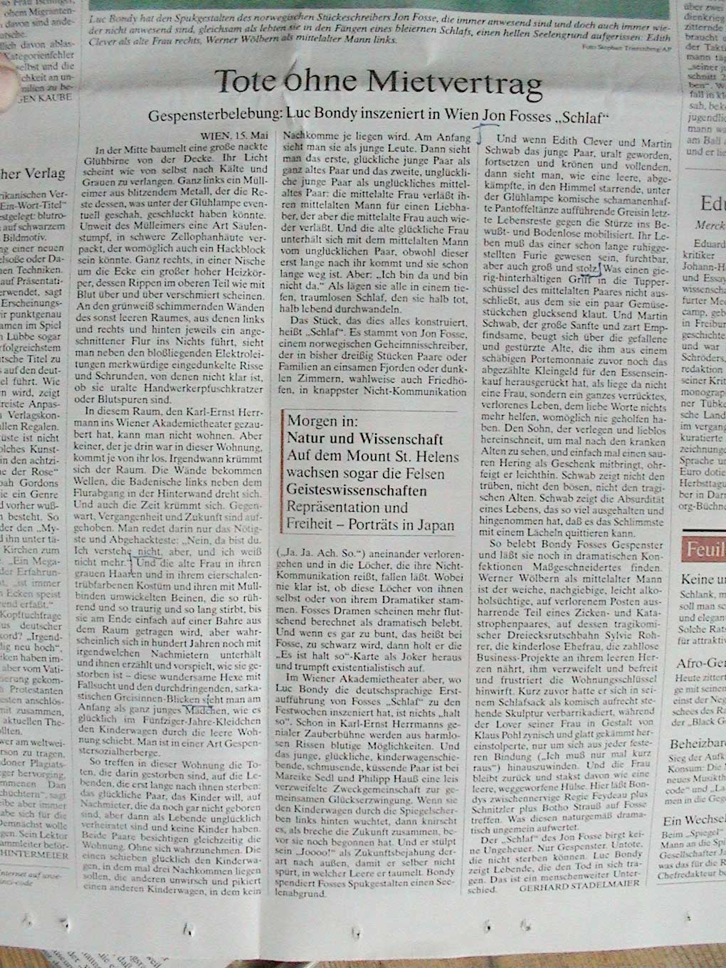 Allgemeine Zeitung" die deutsche Erstaufführung des Stückes "Schlaf" des