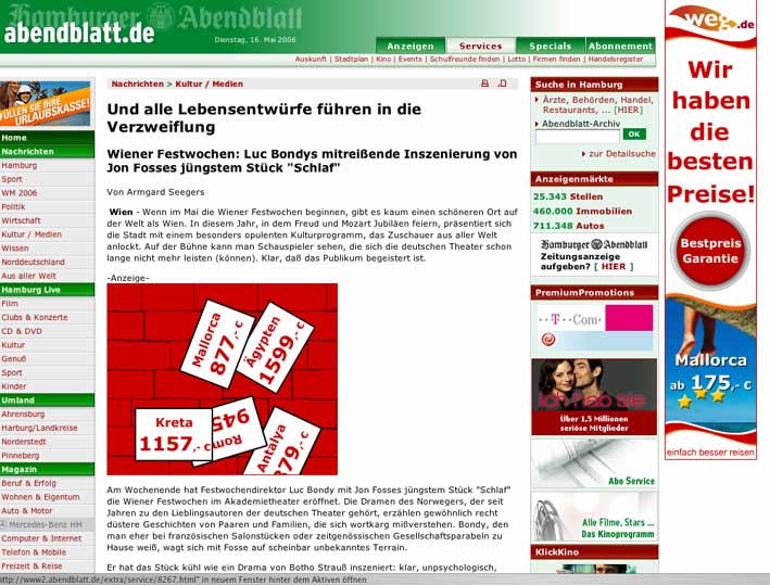 -Anzeige-Am Wochenende hat Festwochendirektor Luc Bondy mit Jon Fosses jüngstem