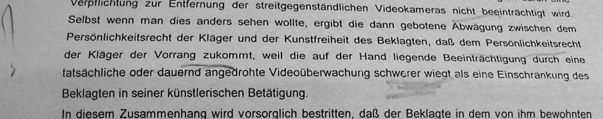 So stehe denn gegenüber angebliches Individualrecht gegen die Kunstfreiheit, wobei dem Individualrecht höherer Wert zustehe. So sagen sie. Die Handlanger-Juristen aus N.