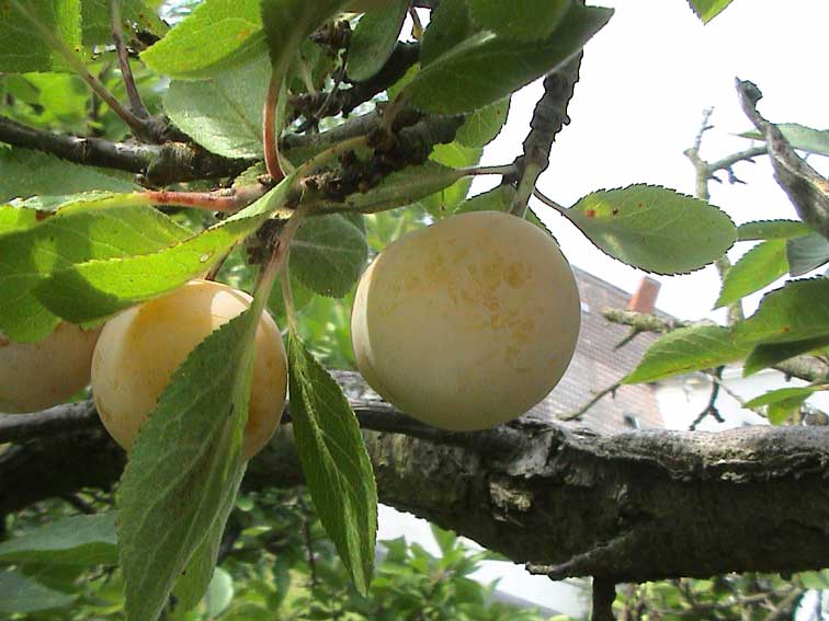haben wir sie alle, die übrig gebliebenen Pflaumen--, Birneen und den Mirabellenbaum