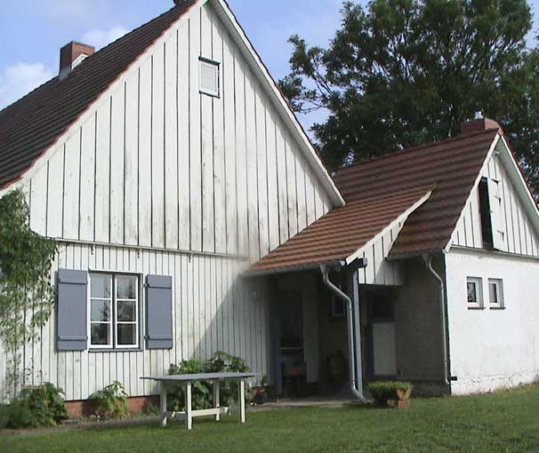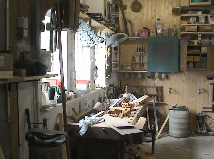 alten Lehmfachwerk als Vorbild in eigener Werkstatt und der Birnbau erinnert