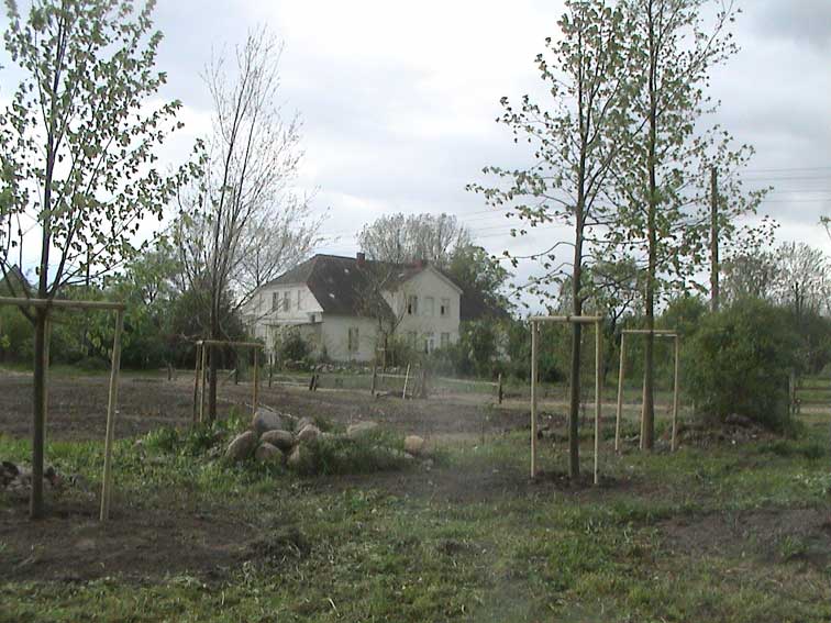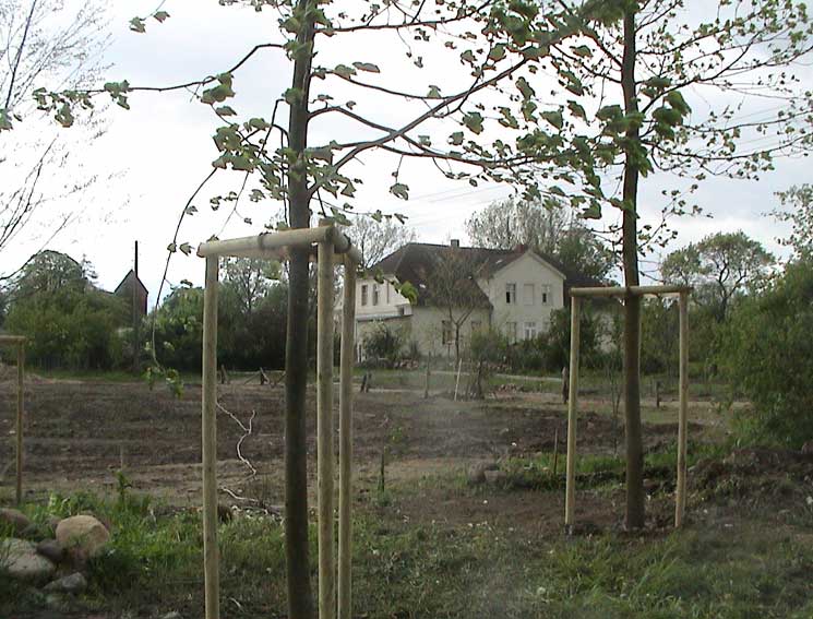 Bildmit den jetzt neu gepflanzten Bäumen vorne auf das Haus über