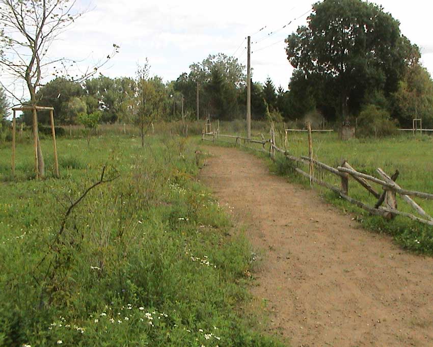 alte Weg aufs Feld ist nun wieder da und erhalten. Aber kein Feld und die Schule,