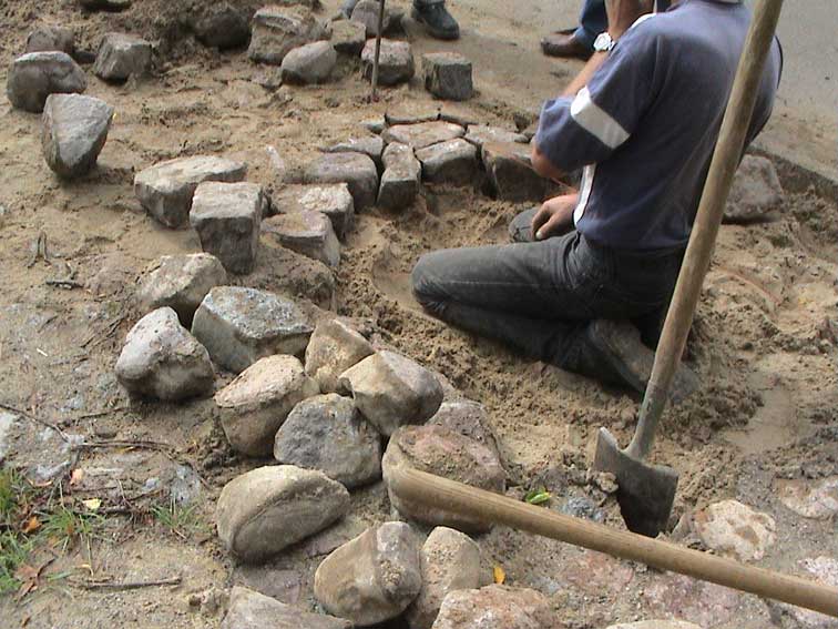 Kopfsteinplaster bis hinaus zu legen. Das war ziemlicher Aufwand. So kostspielig,