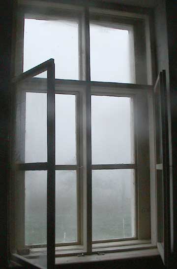 Blick aus dem neuen Fenster auf die neuen Anlagen im Dunst des gnädigen Morgens.